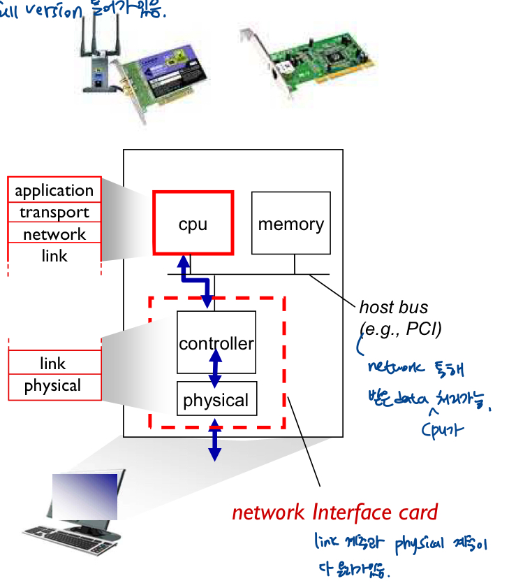 - 네트워크상 모든 노드에 링크계층 들어감. host, router 둘 다 full 버전 들어가있음