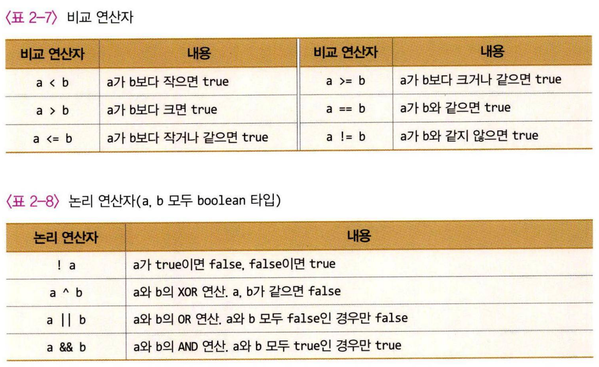 - 기본타입 이외의 리터럴: null 리터럴(기본타입에 사용될 수 없고 객체 레퍼런스에 대입), 문자열(String) 리터럴-" " 즉 이중 인용부호로 묶어서 표현