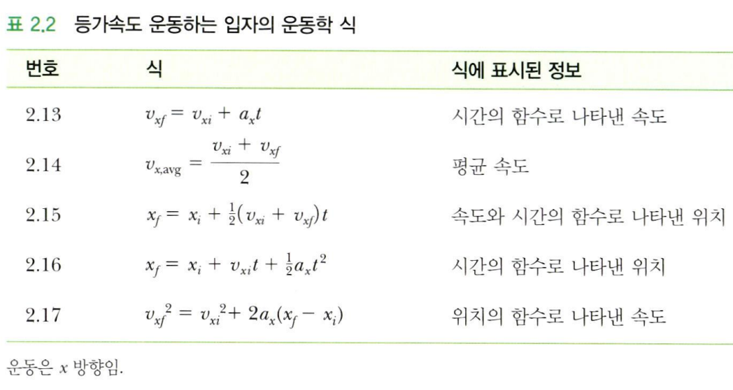-등가속도 운동하는 입자: 항상 평균가속도=순간가속도, 입자의 속도는 운동하는 전 구간에 걸쳐 같은 비율로 변화