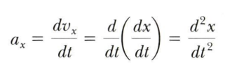 일차원 운동에서 입자의 가속도는 시간에 대한 입자의 위치 x의 이계 도함수(이차 도함수0와 같음.