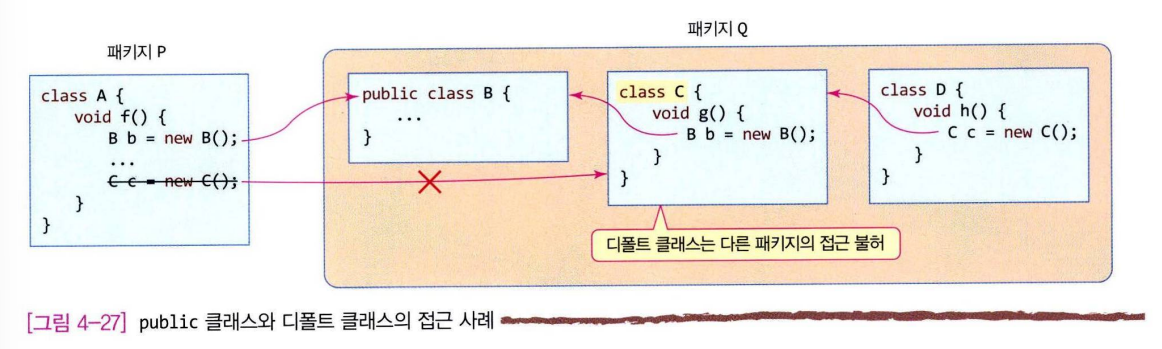- 오직 같은 패키지 내의 클래스들에게만 사용 허용