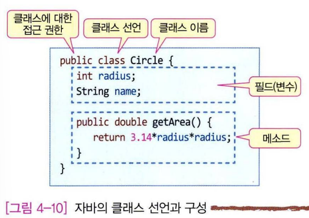 - 클래스 멤버는 필드와 메소드 (필드는 객체의 상태값을 저장할 멤버변수. 메소드는 실행가능한 함수-객체의 행위 구현)