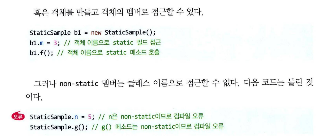 - non-static 멤버는 객체가 생길 때 함께 생성되고 객체가 사라지면 함께 사라짐