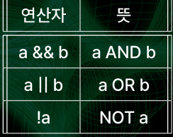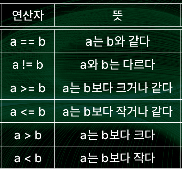 - 반환되는 값은 연산결과에 따라 true 또는 false