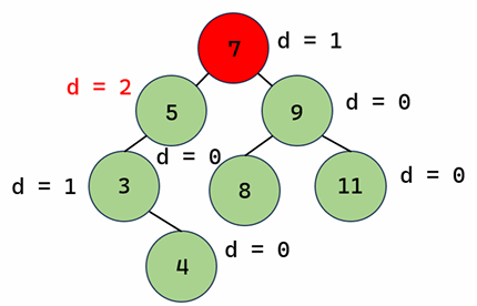 - 어떤 정점의 높이 : 그 정점에서 리프로 내려가는 경로중 가장 긴 경로의 길이