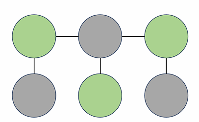 - 초록색 정점들을 하나의 집합으로 묶고 회색 정점들을 하나의 집합으로 묶을 수 있다.