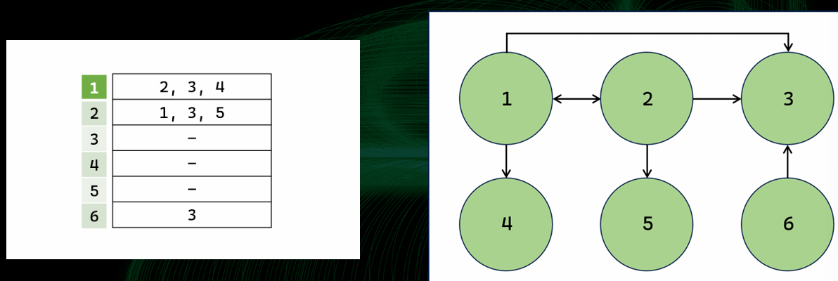 - u번 정점에서 v번 정점으로 가는 간선이 있다면 u번 정점에 해당하는 리스트에 v 추가