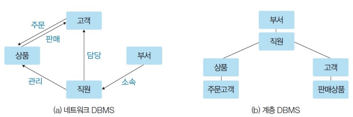 - 1세대 : 네트워크 DBMS, 계층 DBMS