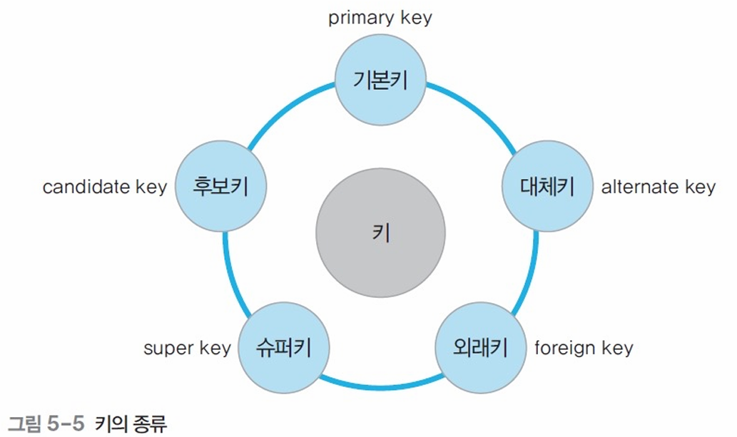 - 대체키(alternate key) : 기본키로 선택되지 못한 후보키