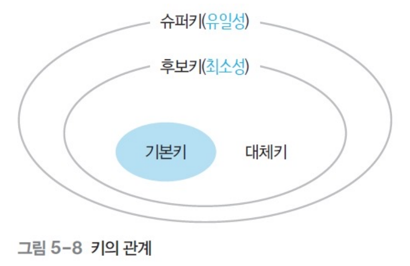 - 대체키 : 기본키로 선택되지 못한 후보키