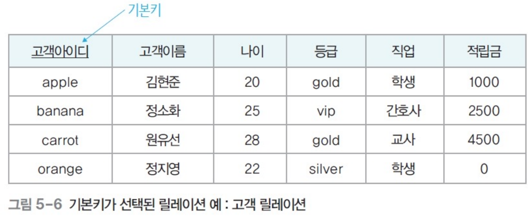 - ex) 고객 릴레이션의 기본키 : 고객아이디