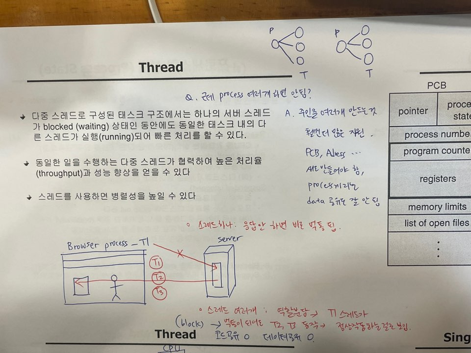- โ๏ธ "Thread๋ lightweight process์ด๋ฉฐ, process ํ๋๋น ์ฌ๋ฌ thread ๊ฐ์ง ์ ์์"