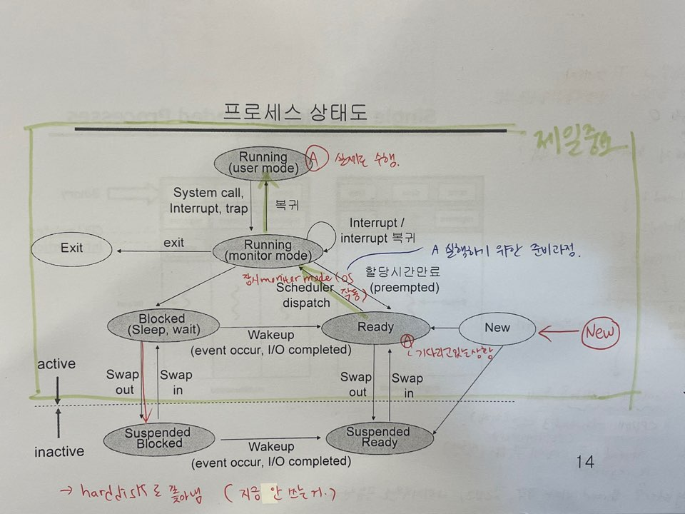 - โ๏ธ ํ๊ธฐ: ์์ ์์ฒญํ๋ฉด blocked ์ํ๋ก ๋น ์ง โ ์๋ฃ๋๋ฉด ๋ค์ Ready