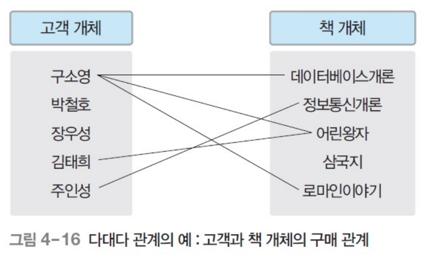 - ex) 책 개체가 고객 개체와의 구매 참여에 선택참여 - 고객이 구매하지 않은 책이 존재할 수 있음.