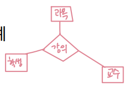 - 삼항관계 : 개체 타입 3개가 맺는 관계