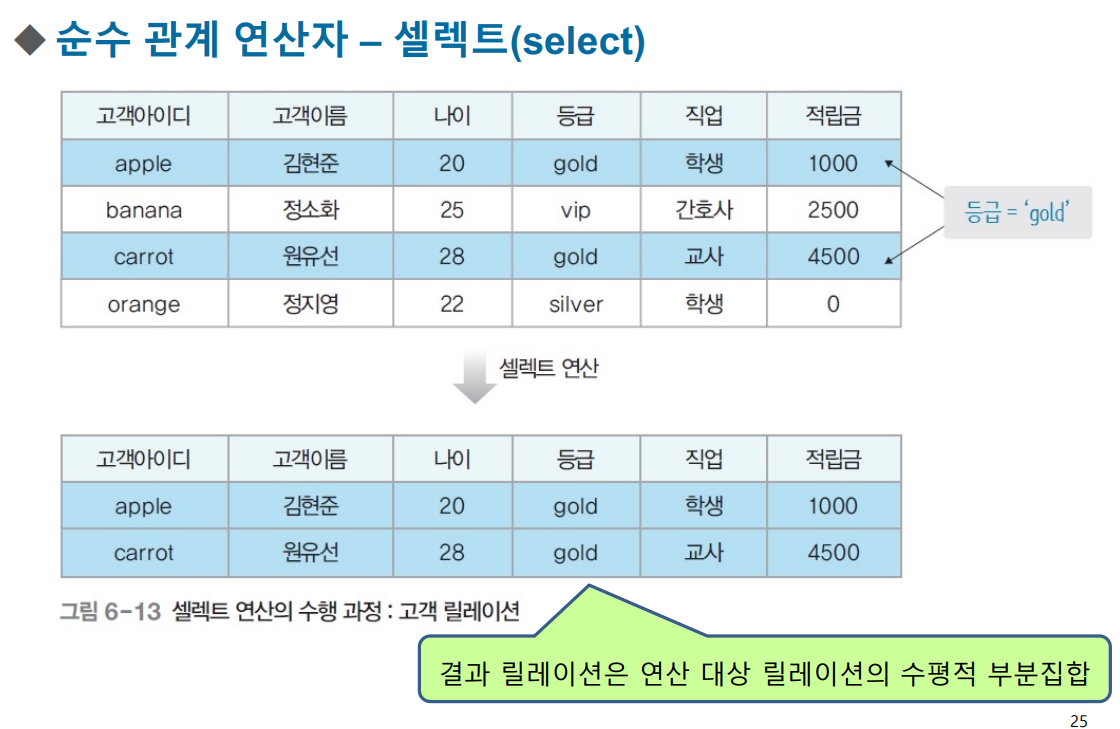 순수 관계 연산자 - 셀렉트(select)
