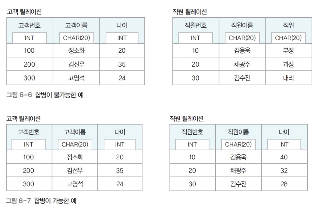 - 합병 가능(union-compatible) 조건