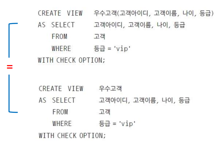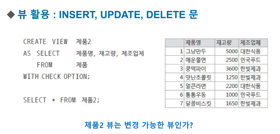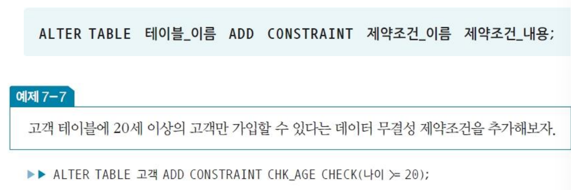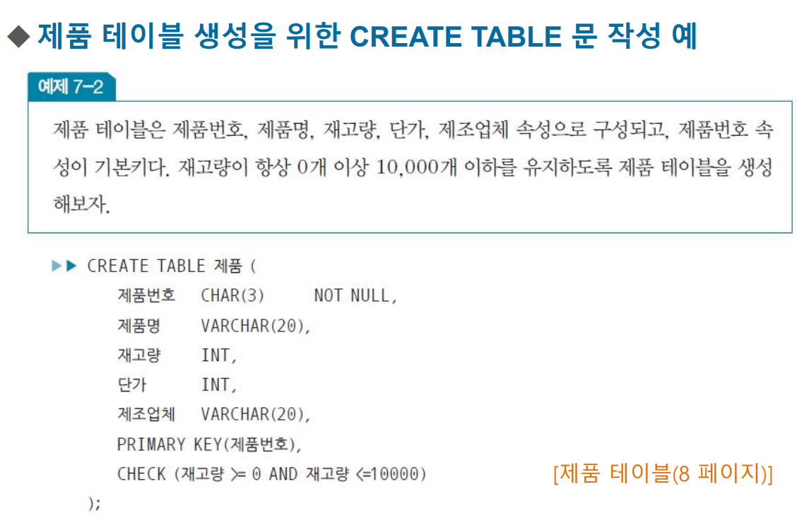 - ex) CONSTRAINT CHL_CPY CHECK(제조업체 = '한빛제과')