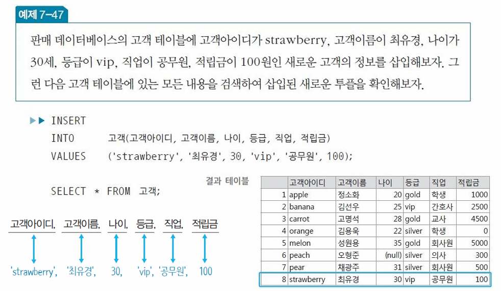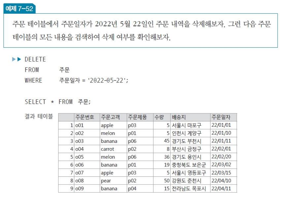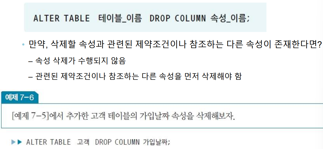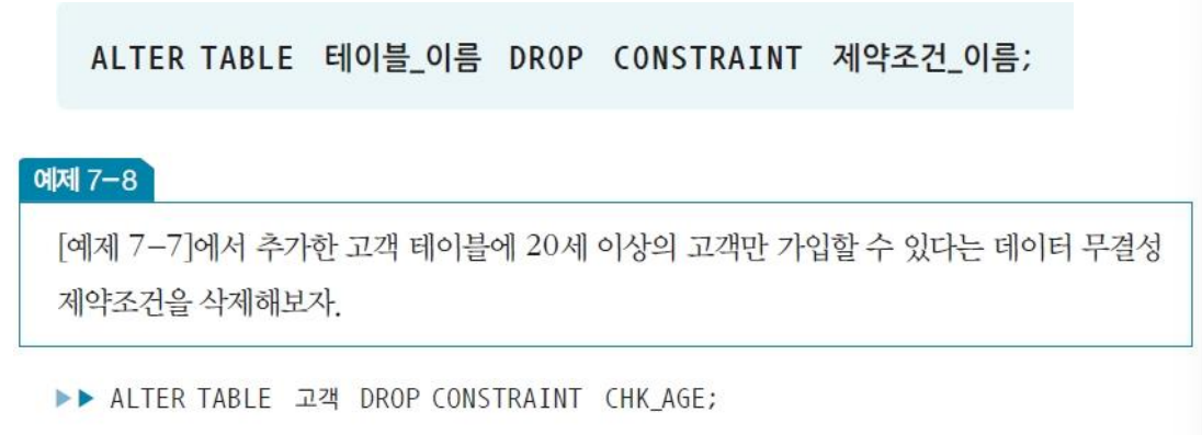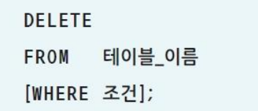 - DELETE: 데이터 조작어에서 사용, 정의(스키마)는 사라지지 않고 고객테이블의 모든 레코드가 다 삭제