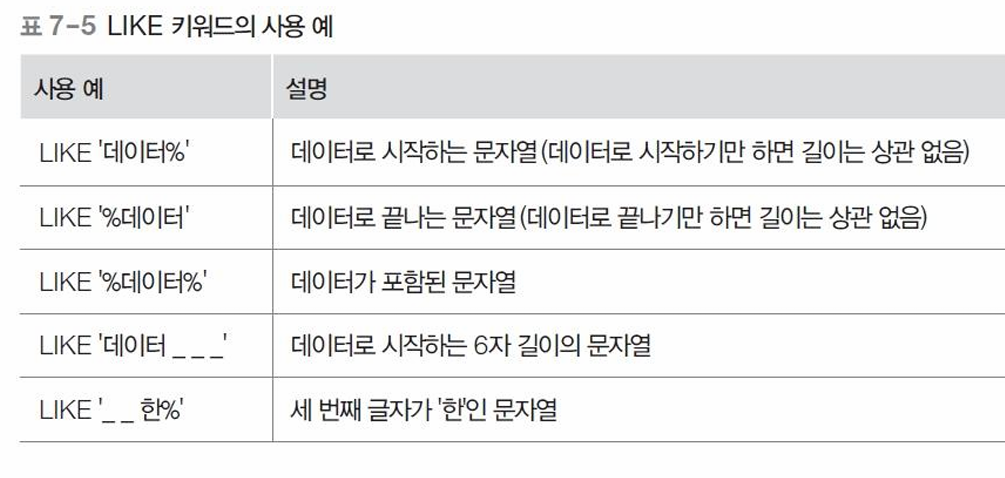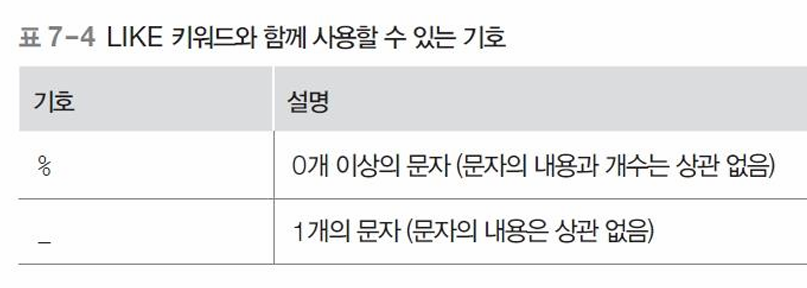 - 숫자뿐만 아니라 문자, 날짜 값 비교도 가능