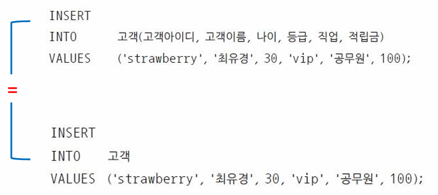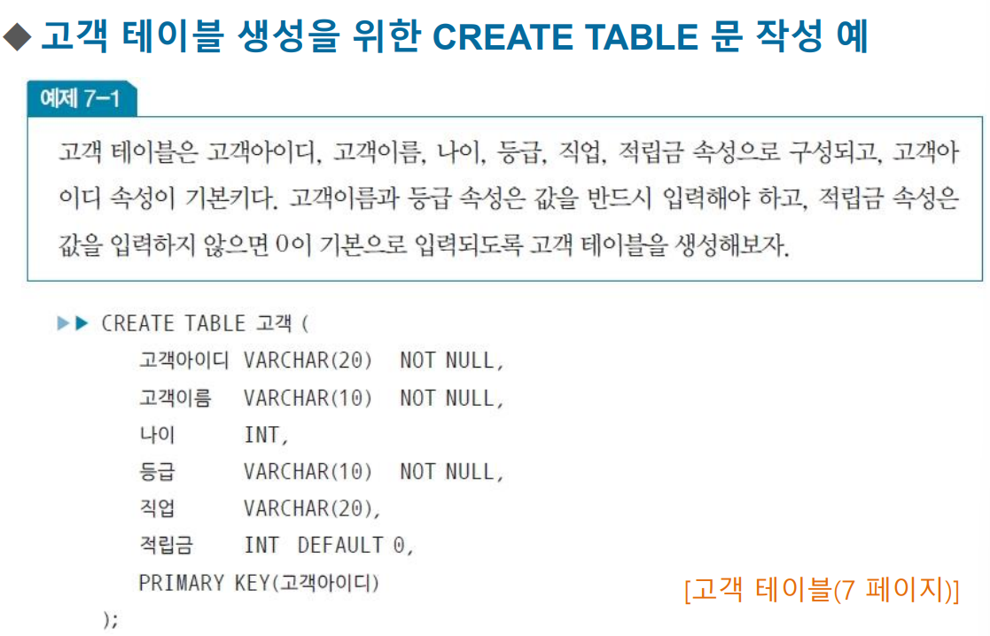 - ex) 고객아이디 VARCHAR(20) NOT NULL