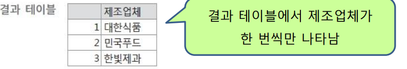 --> 결과테이블에서 제조업체 중복되는 똑같은 결과 나옴