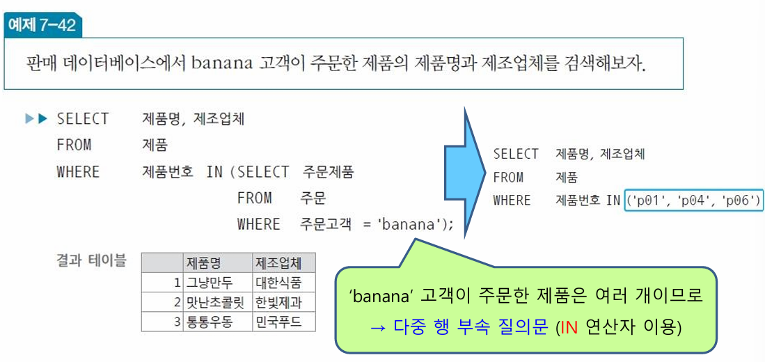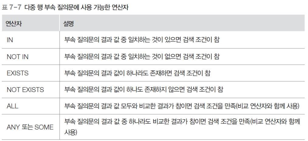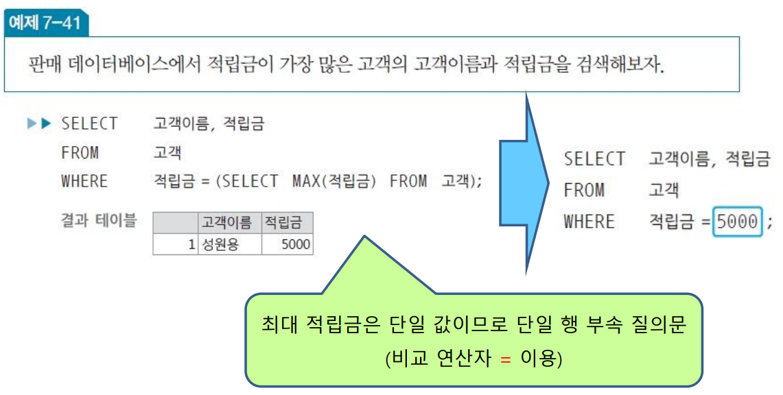 -- 스칼라 부속질의 : 부속질의의 결과 ㄱ밧이 단일 값이 단일 행, 단일 열로 반환