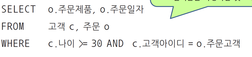 - 오라클 : 큰따옴표, MS SQL 서버에서는 작은따옴표 사용