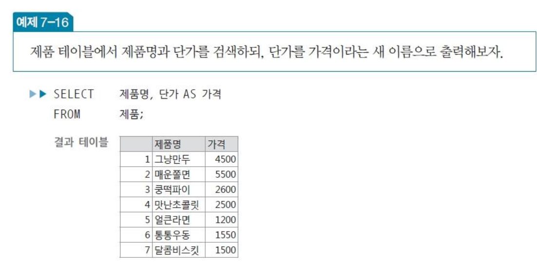 AS키워드를 이용해 결과 테이블에서 속성의 이름을 바꾸어 출력 가능