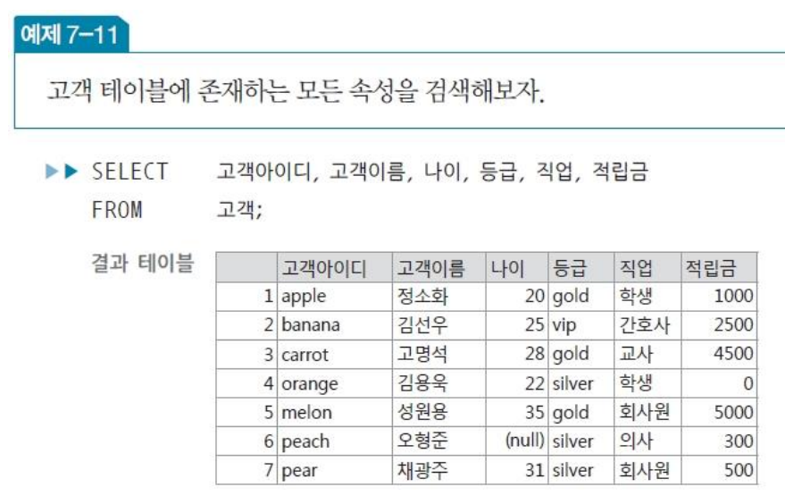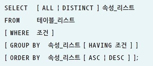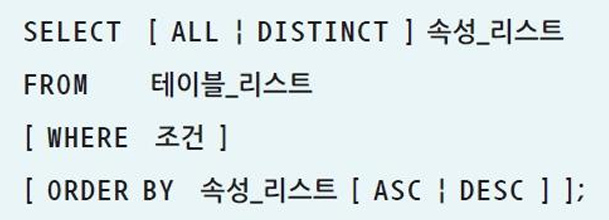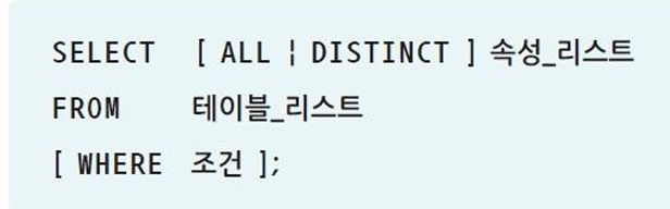 SELECT [ALL | DISTINCT ] 속성_리스트