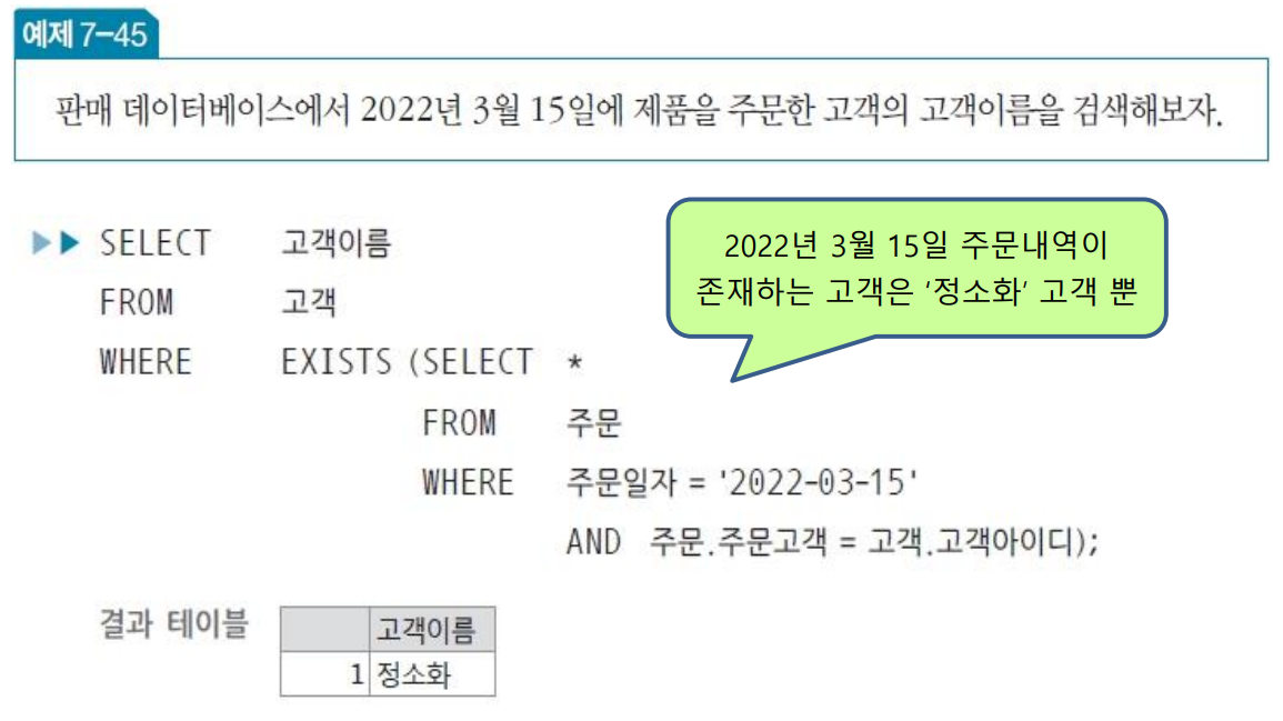 -- 2. 서브쿼리에서 해당 고객의 주문내역이 존재하는지 확인