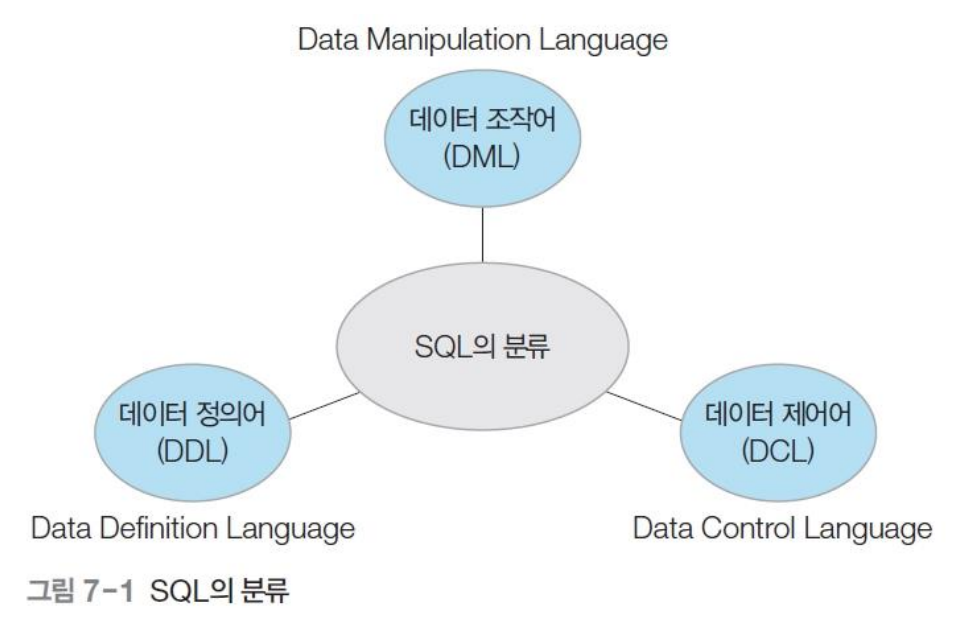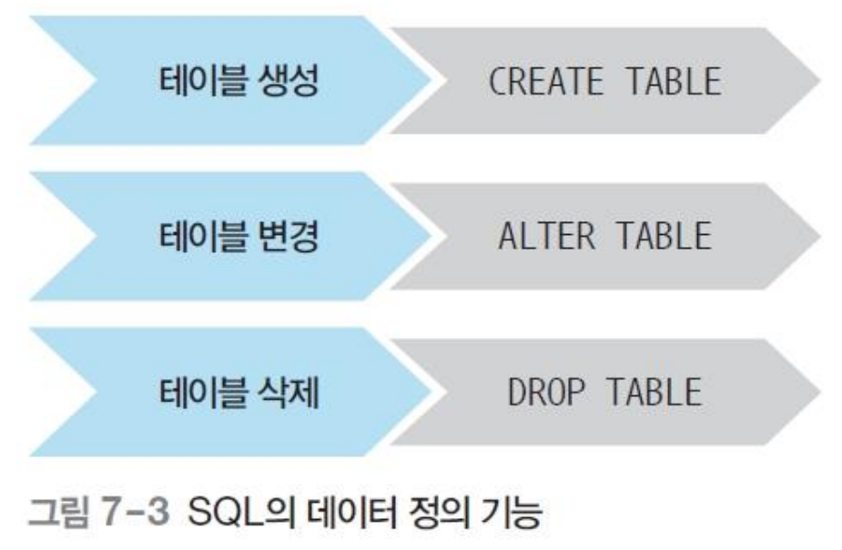 - 데이터 정의어(DDL) : 테이블을 생성하고 변경, 삭제하는 기능 제공