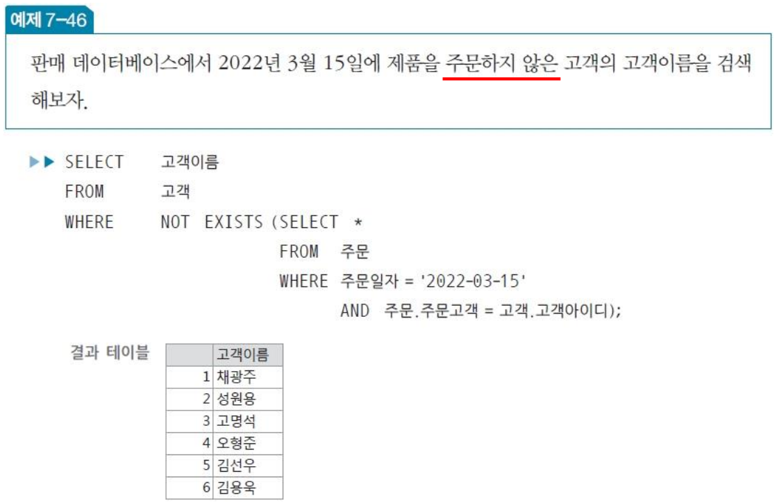 -- 2. 서브쿼리에서 해당 고객의 주문내역이 존재하는지 확인