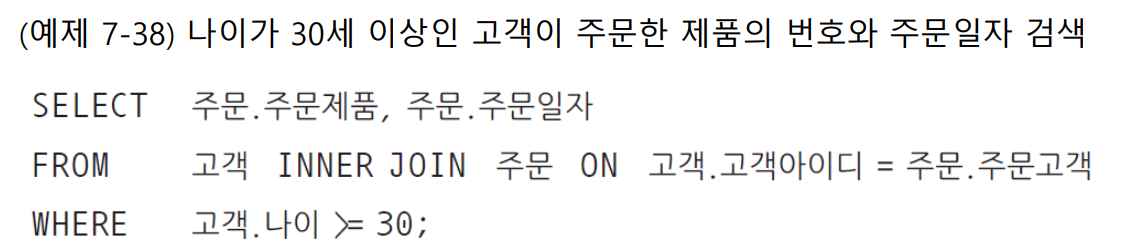 FROM 제품 INNER JOIN 주문 ON 제품번호=주문제품