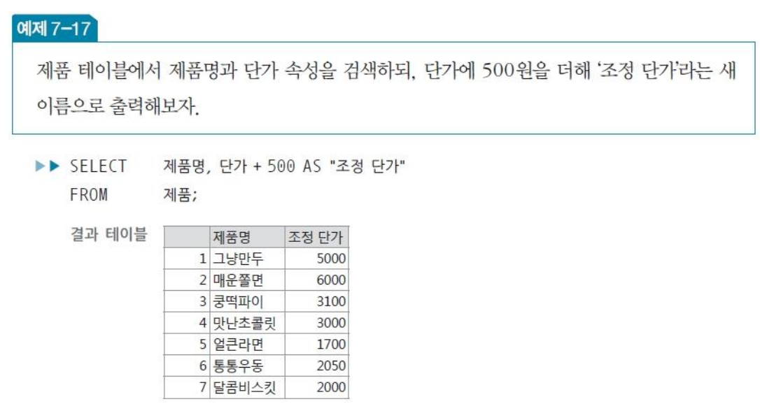 - 결과 테이블에서만 계산된 결과 값이 출력됨