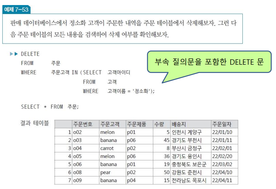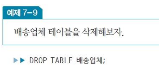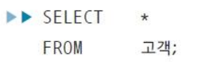 - DELETE: 데이터 조작어에서 사용, 정의(스키마)는 사라지지 않고 고객테이블의 모든 레코드가 다 삭제