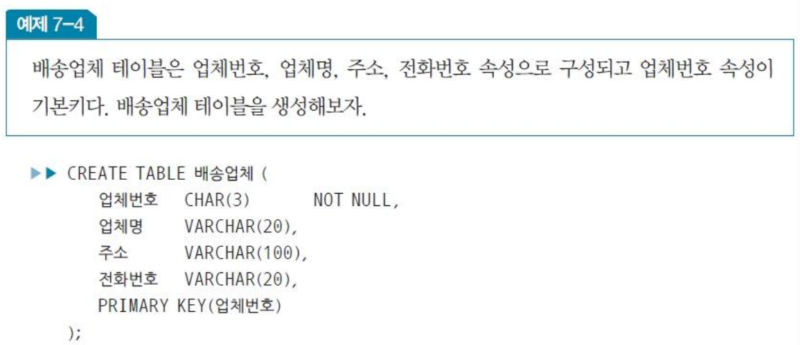 - ex) 고객아이디 VARCHAR(20) NOT NULL