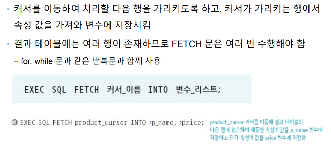 - BEGIN DECLARE SECTION과 END DECLARE SECTION 사이에 선언