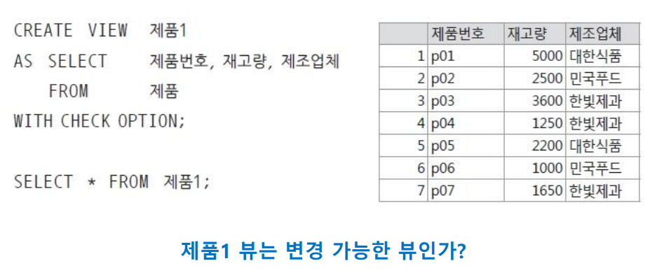 - ex) CONSTRAINT CHL_CPY CHECK(제조업체 = '한빛제과')