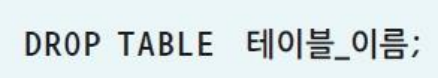 - DROP : 데이터 정의어에서 사용, 테이블 자체가 없어짐, 정의(스키마) 자체를 삭제