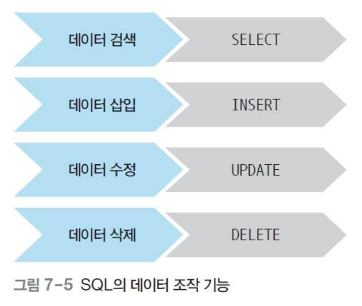 - 데이터 조작어(DML) : 테이블에 새 데이터를 삽입하거나 테이블에 저장된 데이터를 수정, 삭제, 검색하는 기능 제공